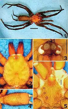 - Pickard-Cambridge, F. O. (1896). "On the Theraphosidae of the lower Amazons: being an account of the new genera and species of this group of spiders discovered during the expedition of the steamship "Faraday" up the river Amazons". Proceedings of the Zoological Society of London. 64 (3): 716–766. doi:10.1111/j.1096-3642.1896.tb03076.x. hdl:2027/coo.31924018549828.