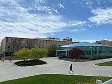 A six-story addition was completed in 1976, doubling the library's physical space and increasing the library's seating capacity from 2,500 to 4,500.[14][15] The addition had moveable walls, integrated student study spaces into the stacks, added group study rooms, and included a vault for archival materials.[15] Art professor and artist Franz M. Johansen created four cast stone panels used to decorate the south entrance of the library and representing four areas of human knowledge.[16]