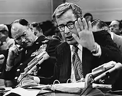 Harold Brown (September 19, 1927 – January 4, 2019) was an American nuclear physicist who served as United States Secretary of Defense from 1977 to 1981, under President Jimmy Carter. Previously, in the John F. Kennedy and Lyndon B. Johnson administrations, he held the posts of Director of Defense Research and Engineering (1961–1965) and United States Secretary of the Air Force (1965–1969).[2]