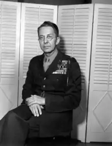 He was subsequently ordered back to the United States and assigned to Marine Corps Base Quantico, where he was appointed director of the Marine Corps Command & Staff School. Rosecrans remained in this capacity until November 1944, when he was transferred back to the Pacific and appointed commanding officer of the 7th Field Depot within III Marine Amphibious Corps.[5] Rosecrans' unit was redesignated 7th Service Regiment, and he sailed with that unit to Okinawa in June 1945. His regiment consisted of engineer company, signal company, military police company, ordnance company, supply company, transport company and several Marine ammo companies.[6] For his service on Okinawa, Rosecrans was decorated with the Bronze Star Medal with Combat "V".