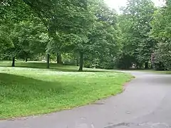 The park lodge and a small car park are in the east close to the entrance on Park Road, while the other entrance is in the west on Cemetery Road.[1][2][4] Information boards are located around the park.[2]