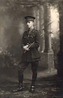 He attended Tonbridge School and then went to the King's School, Rochester. He went to the Royal Military Academy, Woolwich, London, England, which was established in 1741 to educate the military branch of the Board of Ordnance to produce officers for the Artillery and Engineers. He entered the Royal Artillery in 1885 and was promoted to Captain (1895), Major (1904), Lieutenant-Colonel (1907), and Colonel (1914). His ordnance formation was as follows: Ordnance Officer 4th Class 1896–1902, 3rd Class 1902–7, 2nd Class 1907–14, 1st class 1914.[1] On 1 April 1896 he was seconded for service with the Inspection Branch.[2] He served in the Hyderabad contingent and, by 1893, in Madras. (ref: The Register of Tonbridge School, from 1820 to 1893 page 206 https://books.google.co.uk/books?id=4b8NAAAAYAAJ&printsec=frontcover#v=onepage&q&f=false