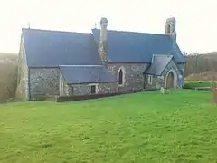 The parish church is dedicated to St Madoc of Ferns.[6] Before the 1880s the church was a "barn-like old church of nave and chancel with big sash windows and a makeshift roof of salvaged ships' timbers" but had become derelict. It was rebuilt in 1885.[7]