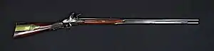 Some historians believe that a small number of early 1803 type rifles were produced for the Lewis and Clark expedition.[4] It is also possible that contract rifles of 1794 were modified at the arsenal at Harper's Ferry, by shortening the barrels and reboring and rerifling them to .54 caliber. The records at the arsenal are not exact on the matter, as it appears the first 1803 prototype was produced six months after Lewis departed Maryland. The later 1803 rifles had a slightly lighter barrel than the first production run version, and had other slight differences such as a thinner lock plate and a narrower trigger guard. The barrel was 36 inches in length on the second version.