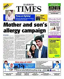 Harrow Times is a British weekly local newspaper published by Newsquest, covering the London Borough of Harrow and surrounding areas.[2]