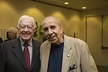 In 1993, Middleton made the decision to release recordings of the telephone conversations Johnson made throughout his presidency.[13][14] Although Johnson had stipulated that the recordings be sealed until 50 years after his death (the year 2023), Middleton consulted with the President's widow, Lady Bird Johnson, about releasing them sooner, and she said the decision was his to make. The conversations, most of which were recorded on a Dictaphone machine, cover a variety of issues, including foreign policy, the Vietnam War and peace negotiations, legislation, civil rights, the economy, politics, labor issues, appointments, and press relations.[15] Consequently, 642 hours of secretly taped telephone conversations have been made available to the public, providing insight into Johnson's legislative skills and substantially elevating his historical standing as a president.[16][17]