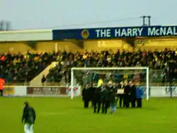 Chester City Football Club have now renamed a stand to honour their former manager, known as the Harry McNally Terrace. This was opened on 26 December 2006 by EX chairman Stephen Vaughan, with a plaque also presented the same day on behalf of the fans by Chester City Supporters' Trust.[15]