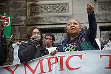 Walia was active in the Olympic Resistance Network (ORN), which instigated several anti-Olympic actions and demonstrations during the 2010 Winter Olympic Games in Vancouver.[48] The actions were in response to growing homelessness rates of low-income residents in the DTES and cuts to social programs due to urban gentrification in the build-up to the games.[49] The Women's Memorial March Committee and Power of Women group also resisted the Games by refusing to cancel or reroute the annual February 14 Women's Memorial March[49] and obstructing the Olympic Torch Relay as it passed through the DTES.[40]