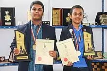 He won his first national chess championship title at the age of 16 in 2019.[10][11] He also secured silver medal in the Under 18 open event at the 2019 West Asian Youth Chess Championship which was held in New Delhi.[12] He captained the 12 member Sri Lankan contingent in the FIDE Online Chess Olympiad 2020.[13][14][15] He was also selected to play in the Online Intercontinental Youth Chess Cup 2020 representing the Asuan Youth Chess team.[16] He also captained the Sri Lankan boys team at the 2020 Asian Boys and Girls Online Chess Championship in their Zonal 3.2 category where boys team secured third position and it was also the inaugural online edition of the Asian Boys and Girls tournament.[17]