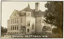 Hartford incorporated as a city in 1883. While Hartford had a large German-American population in the 19th century and was home to several German cultural associations, including the Hartford Turners, the Hartford Schützenverein, and a chapter of the Sons of Hermann,[15] the Germans in Hartford tended to a little more assimilated than Germans in other Washington County communities. In 1912, one historian observed that in Washington County "there have always been places where the American [culture] predominated. Take the example of the two cities in the county. Hartford always was more of an American community than West Bend."[21]