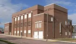 The Hartington City Hall and Auditorium, also known as the Hartington Municipal Building, is a city-owned, brick-clad, 2-story center in Hartington, Nebraska. It was designed between 1921 and 1923 in the Prairie School style by architect William L. Steele (1875–1949).