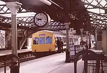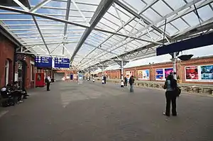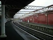 The station has two platforms currently in use: a bi-directionally signalled through platform (the original down platform), used by almost all timetabled services and a south-facing bay platform (with only one weekly booked departure). The former up platform 1 has been disused since the footbridge linking the platforms was removed in the late 1990s. In August 2013 Grand Central proposed reopening the disused up platform as part of its track access application extension[5] although they never implemented this proposal. In September 2020, Tees Valley Combined Authority launched a £1.5 million study to investigate the feasibility of a similar scheme to reopen the former up platform so as to improve capacity through the station.[6] In March 2022, it was announced that funding had been secured to bring the old platform back into use, with a new footbridge and lifts installed, by June 2023.[7]