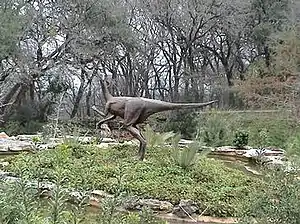 A life-size sculpture of an Ornithomimus, the species of dinosaur believed to have left the tracks, stands in the center of the gardens.[4]