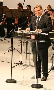 Hartmut Mehdorn (born 31 July 1942 in Warsaw) is a German manager and mechanical engineer. Until May 2009 he served as CEO of Deutsche Bahn AG, Germany's biggest railway company. He served as CEO of Germany's second largest airline Air Berlin until he stepped down in January 2013.[1] In March 2013 he assumed a CEO position at Flughafen Berlin Brandenburg GmbH (FBB), the owner and future operator of Berlin Brandenburg Airport,[2] until March 2015.[3]