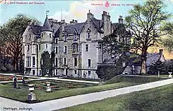 John Stewart, an ex-Commissioner for Kirkcudbrightshire in the Parliament of Scotland, was in charge of the house after his marriage in 1704 to Elizabeth Scott, the daughter and heir of Sir Francis Scott. Stewart already had land at Kirkcudbright that he had inherited from his father. The land at Hartrigge became "Stewartfield" under his brief control.[2] The newlywed Stewart was invited to after election meeting at the Black Bull Inn in Jedburgh to celebrate the victory of Sir Gilbert Eliott, 3rd Baronet, of Stobs. Eliot was annoyed that Stewart had not voted for him and Stewart threw a glass of wine at Eliot. Stewart later complained that he was murdered whist sitting although he did manage to rise to his feet after Eliot stabbed him with his sword. Stewart died and Eliot had to flee the country.[3] In time Eliot's friend's interceded on his behalf and he was allowed to return to Scotland after a royal pardon.[4]