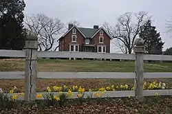 Hartwood Manor, also known as Old Foote Place, is a historic home located at Hartwood, Stafford County, Virginia. It was built in 1848, and is a 2+1⁄2-story, three bay Gothic Revival style brick dwelling. It has a rear ell added in 1967. It features a steeply-pitched, cross-gable roof; one-story, polygonal bay windows; pointed and square-arched drip moldings; modified lancet-arch windows; and deep eaves with exposed rafter ends. The property includes the contributing frame barn, a concrete block milk house, a frame chicken house, and a frame workshop, all dated to the early-20th century. A contributing hand-dug well dates to the mid-19th century.[3]