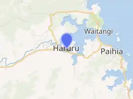 Haruru is a residential and commercial locality in the Far North District of New Zealand. State Highway 11 runs through the locality. Puketona is 10 kilometres west, and Paihia is 4 kilometres east, The name means a continuous noise or roar in the Māori language,[3] which refers to the sound of Haruru Falls, a five metre high broad waterfall about a kilometre away.[4]