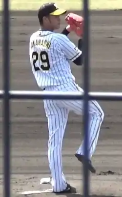 He spent the first few months in the farm to give his arm more time to heal.[13] His first start came on May 5 against the Baystars, but he failed to secure a win after giving up 5 runs in 4 innings.[14] He also lost his next start, but redeemed himself on May 30 when he pitched 7 solid innings against the Giants and won the game. This was his first official win in more than a year.[15] He continued to pitch well afterwards and was even in the running for the July MVP of the month after giving up at most 2 runs in 6 consecutive starts, but he kept failing to secure a win due to lack of run support.[16] His continued starts took its toll on his arm once more however, and he went into a slump later in the season, losing 3 out of his 4 matches in September.[17] He also pitched in relief during Randy Messenger's retirement game on September 29, and recorded his first career hold after pitching 2 scoreless innings. He finished the season with 3 wins, 9 losses, 1 hold and a 3.78 ERA in 19 game appearances. After Hanshin finished 3rd in the overall rankings, he started 2 games during the post-season Climax Series and helped his team beat the Baystars to reach the final stage.[18] His improved performance earned him a 9 million pay raise, bringing his total annual salary to 22 million yen.[17]