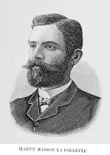 Harvey Marion LaFollette (September 8, 1858 – September 20, 1929) was an Indiana teacher and educator, who as a young man,[1] served two terms as Indiana Superintendent of Public Instruction.[2] He then moved to Tennessee, where he established the town of LaFollette. His company, LaFollette Coal, Iron, and Railway Company, eventually employed more than 1500 people and was the largest blast furnace in the Southern United States.[3]