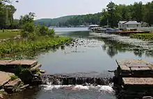 Although Harveys Lake's waters were described as having "great purity" in 1893, the lake has experienced nutrient pollution, especially from phosphorus since at least the mid-20th century.[3][7] Algae blooms occurred on the lake and caused a reduction in water quality throughout the latter half of the 20th century. A sewage system was installed in the borough of Harveys Lake in the summer of 1976, but this did not completely stop the algae blooms.[9] However, the phosphorus load in the lake has been reduced by 29 percent.[4] The lake was identified as impaired in 1994, with the cause of the impairment being large algae blooms and sedimentation in some areas. It is an anoxic lake.[3]