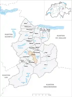 Haslen consists of the linear village of Haslen itself, the hamlets of Leu (formerly Nesslau), Oberhaslen, Büel, Zussigen and Mülibächli.[2]