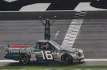 Hattori made his major-series NASCAR debut at Michigan in 2013 with Brett Moffitt. Moffitt started fourteenth and finished seventeenth, one lap off the pace. It would be HRE's only Truck start of the year.[12][13] The team would bring back the No. 16 for Ryan Truex to drive full-time in 2017.[14] Truex missed the playoffs in a tiebreaker with Ben Rhodes,[14] but grabbed his first two career poles during the first round of the playoffs. The team would return full-time in 2018, with Brett Moffitt. In Atlanta (2018), Moffitt was able to get the team's first win in the Truck Series.[15] Moffitt proceeded to win a total of six races on the season, including at Chicagoland where the team nearly wasn't able to race due to lack of sponsorship, to secure Hattori's first-ever NASCAR championship. With Moffitt's win at Phoenix in November, HRE's fifth ever in the truck series, and Moffitt's fifth on the season, the team became locked into the Championship 4 Round at Homestead-Miami Speedway. The next weekend, Moffitt held off Noah Gragson to win the team's first-ever championship.