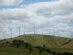 The Hau Nui Wind Farm is a 15-turbine wind farm located approximately 21 kilometres (13 mi) south-east of Martinborough, in the South Wairarapa District of New Zealand. Hau Nui (Māori for "big wind") was the first wind farm built in New Zealand.[1]