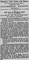 The Reverend William Henry Crawford (1791-1868) lived at the hall with his two unmarried sisters for many years. Then in 1853 at the age of 62 he married Laura Taylor the daughter of a clergyman who was 35 years his junior.[7] William died in 1868 and left in his will some generous bequests to several charities. The Hall was placed on the market in the same year. The sale notice is shown.