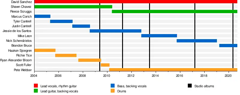 | Past members | Brandon Bruce Nick Schendzielos Shawn Chavez Marcus Corich Tyler Cantrell Justin Cantrell Jesse De Los Santos Mike Leon Haakon Sjoegren Richie Tice Ryan Alexander Bloom Scott Fuller |