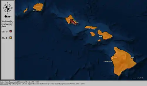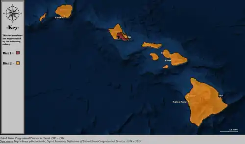 Table of United States congressional district boundary maps in the State of Hawaii, presented chronologically.[7] All redistricting events that took place in Hawaii between 1973 and 2013 are shown.