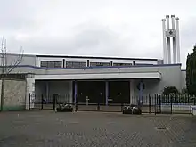 - St. Mary’s Roman Catholic Church. The website https://www.swanlinbar.ie/st-marys-church/ states- St. Mary’s, Swanlinbar was 130 years old in 1958 (it was built in 1828 by Rev. Philip Kiernan to replace a thatched chapel in Gortacashel townland and renovated in 1927 and 1959) and was in urgent need of reconstruction. It was decided to enlarge and modernise the edifice and at the time incorporate the old church in the new structure. Most of the old church was incorporated in the renovated structure that was destroyed by a bomb on 8 December 1974. After this devastating blow, the decision was soon made to demolish the old church, damaged beyond repair and to erect a modern church, in terms of liturgical requirements, and yet standing favourable comparison with the building that had gone before. The new Saint Mary’s church was re-dedicated by Bishop Francis McKiernan on 15th August 1978. The website www.buildings ofireland.ie describes the building as- Freestanding fan-plan double-height Roman Catholic church, built 1978, with central projecting sanctuary in curved east elevation, clerestorey windows to front elevation over single-storey section rotated to face Chapel Square containing entrance lobby, sacristy to north-west and side chapel to south, belfry composed of four freestanding concrete columns in V-arrangement rising from sanctuary of side chapel, lower canopy on round columns across front elevation. Metal-sheeted roof to main church space of radiating timber-clad beams sloping upward from clerestory over entrance lobby to wider altar end with flush rooflights over sanctuary. Aluminium coping to parapets, flat roofs to canopy, entrance lobby, side chapel and sacristy. Roughcast rendered walls with smooth rendered plinth course. Round polished stone plaque within canopy inscribed 'ST MARY'S / CATHOLIC CHURCH / DEDICATED / 15TH AUGUST 1978 / BY / MOST REV / FRANCIS J. McKIERNAN D.D / BISHOP OF KILMORE'. Aluminium windows to clerestory, side chapel, and sacristy. Double-height angle-headed aluminium windows flanking wide end of church space. Vertical slit windows forming projection in sanctuary. Three timber doors open to canopy above single step. Acoustic ceiling panels on lateral purlins over radiating timber clad beams supported on engaged columns at narrow and wide ends of main church space. Painted fairfaced blockwork walls, stained glass to clerestorey and sanctuary of side chapel. Timber seating arranged in wedge-shaped blocks radiating from rectangular altar extending forward from sanctuary recess below four-sided rooflight shaft angled to underside between central beams. Set back streetline with pedestrian access via steel gates. Appraisal- A church of striking modern design built to replace an earlier structure destroyed in a bombing in 1976. Characteristic of the Modern style favoured by the Roman Catholic Church in the decades after the Second Vatican Council (1962-65), the design by Hubert Duffy is a composition of volumes reflecting the internal spatial arrangement with a Modernist belfry to add verticality to the composition and to mark the position of the church within the town. Following the precepts of the Modern Movement, structure and light are the central architectural features of the interior, with natural light introduced to highlight the altar and sanctuary as the central focus of the space. The church adds a notable twentieth-century layer to the predominantly eighteenth- and nineteenth-century streetscape of Swanlinbar.[46]
