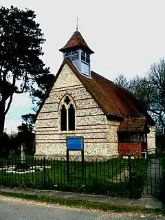 St Mary's Church was first mentioned in 1227. During the 19th century it fell into disrepair and was rebuilt in 1856 by the church architect William White, using original flint-and-brick materials and in a style peculiar to the 1850s known as 'constructional polychromy'.[9] The church has retained its 13th century circular font.[10] Oliver Cromwell ordered that church organs be removed in 1644. Churches relied on bands comprising local musicians to provide accompaniment until organs were reintroduced in the 19th century. An old bassoon made around 1800 and played at St Mary's was found during refurbishment of the church and is now to be found in Buckinghamshire County Museum Aylesbury.[11]