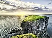 The glaciers began their retreat from in the Maritimes approximately 13,500 years ago,[3] with final deglaciation, post-glacial rebound, and sea level fluctuation ending and leaving the New England-Maritimes region virtually ice free 11,000 years ago.[4][5] The earliest evidence of Palaeo-Indian settlement in the region follows rapidly after deglaciation. Evidence of settlement found in the Debert Palaeo-Indian Site dates to 10,600 before present, though settlement seems likely to have occurred earlier,[4] following large game animals such as the caribou as they expanded into the land revealed by the retreating glaciers. The record of continuous habitation through the paleo and archaic period over ten thousand years culminated in the development of the culture, traditions, and language now known as the Mi’kmaq.[6]