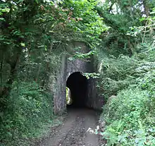 The bottom end of the incline was to the west of Mill Road; having reached the lower level, the line curved round sharply to the north, following the contour, turning west again. It crossed the small valley formed by an arm of the Red River immediately to the north of the present viaduct, and the then by a separate bridge over the adjacent Old Mill Lane (in fact a footpath and farm track). The later replacement viaduct is at a much higher level and crosses both the river and lane in a single structure, but the original lane bridge is still present; it is shown as "tunnel" on some modern large scale maps.