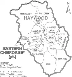 {{cite web}}: Missing or empty|url=(help) - "Haywood County NC - Cities, Towns, Neighborhoods, & Subdivisions". northcarolina.hometownlocator.com. Retrieved May 3, 2022.