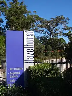 The Hazelhurst Regional Gallery and Arts Centre, also known as Hazelhurst Arts Centre, Hazelhurst Gallery and Hazelhurst, is an arts complex located on Kingsway in the suburb of Gymea, in southern Sydney, New South Wales, Australia. It is the first public arts centre of its kind in Australia and sits on 1.4 hectares (3.5 acres) of gardens. The complex includes two art galleries, a theatrette, art studios, meeting rooms, gift shop and café as well as the gardens. The facility is also available for hire as a function centre. Hazelhurst opened on 22 January 2000. Architects for the building were Michael Bennet (of Jackson, Teece, Chesterman, Willis) in partnership with Esther and Trevor Hayter. The garden designs were by Oi Choong.