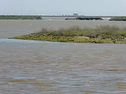 ![]() Hazlewood Marshes with the breaches in the sea wall caused by the tidal surge on 5 December 2013 | |