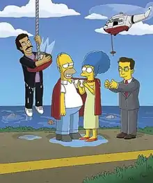 ![]() A promotional image featuring Lionel Richie, Homer, Marge and Colby Kraus | |