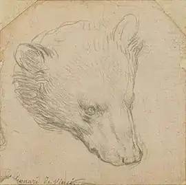 Head of a Bear is thought to have been executed by a young Leonardo da Vinci (b. 1452) circa 1480. It is a close-up drawing of a bear's head on a 7-by-7-centimetre (2.8 in × 2.8 in) piece of pink-beige paper.[1][2] Its size has led it to be described as "a Post-it Note Leonardo".[1] It is drawn with a silverpoint pencil. Silverpointing is a technique that Leonardo learnt in the workshop of Andrea del Verrocchio. It is an unforgiving medium as the marks made by the silver pencil are very difficult to erase.[2]