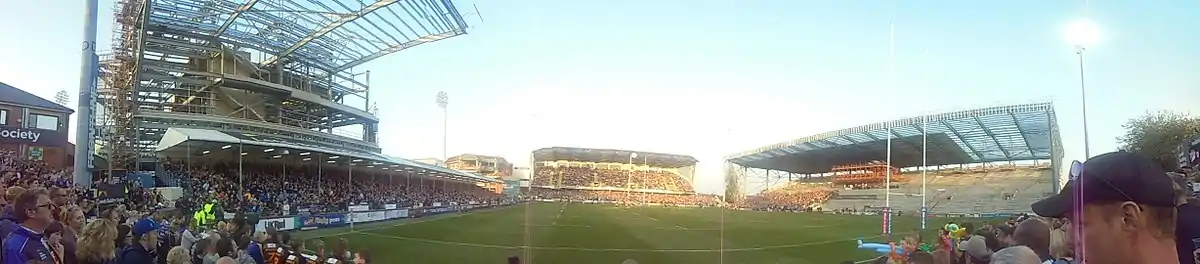 Capacity- 7,721 (2,217 seated) The South Stand is well known in rugby league for being the ground's popular side. The original stand was open to the elements but, following rebuilding in the 1930s, it was partially enclosed by a pitched roof. The roof was extended to cover the entire stand in the 1960s.