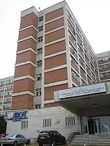As of 2013, there are 425 hospitals in Romania[22] (one hospital per 43,000 people).[23][24] Theoretically, each of the 425 hospitals should be equipped with a basic trauma room and an operating theatre. For each 1,000 people, there are 6.2 hospital beds available.[25] A classification of 461 hospitals in Romania conducted by the Health Ministry in 2011 shows that 58% of them fall into the weakest categories: four and five.[26] The partition of the health institutions was made considering five categories of competence, of which the first category represents the maximum of competence. Among the hospitals in Bucharest, only 19 were classified in the highest class of performance. These comprise 34 sections, with all specializations covered, emergency lines and outpatient cabinets for all sections, medical specialists for each section in part and top performance medical equipment. According to the same classification, the top performance hospitals outside the capital are in Cluj-Napoca (four), Iaşi and Timișoara (two each), Constanța and Târgu Mureș (one each).[27]