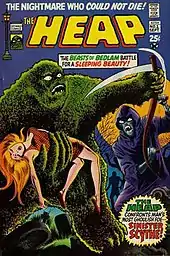 A similar character called The Heap, who did not share the original character's origin or identity, appeared in the publisher Skywald's black-and-white horror-comics magazine Psycho, in most issues from #2-13 (March 1971 - July 1973).[6] This version was created by writer Charles McNaughton and the longtime penciler-inker team of Ross Andru & Mike Esposito. Andru quickly took over scripting as well, later teaming with penciler-inker Pablo Marcos, who remained after editor Al Hewetson took over the writing. The final two stories were drawn by Xavier G. Vilanova,[7] variously credited at Skywald and elsewhere as simply "Vilanova" or "Villanova".[8]