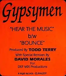 "Hear the Music" is a song by House music DJ/Producer Todd Terry, who recorded the track under the alias "Gypsymen." The single reached the top spot on Billboard's Dance Club Songs Chart in April 1992 and stayed there for one week.