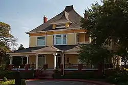 The house was designed in the Queen Anne style by architect James E. Flanders. It has been listed on the National Register of Historic Places since October 8, 1987. The front lobby has beautiful fretwork and there is a One-Of-A-Kind China Cabinet in the dining room. The china cabinet has two concave doors and three convex doors and is built under the staircase. Most all of the rooms in the house have stained glass windows. The Garden leads to a two-story Carriage House used for weddings, parties, bridal showers, and club meetings.[1]