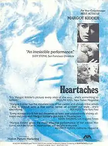 - Canby, Vincent (November 19, 1982). "MARGOT KIDDER IN 'HEARTACHES,' COMEDY". The New York Times. ISSN 0362-4331. Retrieved April 27, 2022.