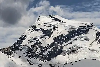 Heavens Peak (8,991 feet (2,740 m)) is located in the Livingston Range, Glacier National Park in the U.S. state of Montana. Heavens Peak is a little more than 1 mile (1.6 km) north of McPartland Mountain.[3] The mountain's descriptive name first appeared on a map prepared by Lt. George P. Ahern, from 1888-1890 reconnaissance maps prepared by him.[4] This geographical feature's name was officially adopted in 1929 by the United States Board on Geographic Names.[2]