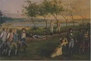 During its voyage to Brittany it learned of the expedition's failure on 21 July 1795. Reduced to 300 men, the regiment camped at the end of the peninsula.[4] It fought bravely but was overwhelmed by the enemy's numbers.[5]