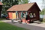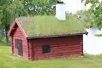 The brewhouse, now used as the kitchen of the cafe, was originally built in 1745 and comes from Mälby in Hedemora parish. I was moved to the gammelgård 1914-1915 and consists of sters (kitchen for brewing and baking) and a maid's apartment. | 60°17′2.63″N 15°58′42.4″E | Bryggstugan, Hedemora gammelgård |