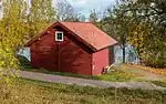 The portlider (port=gate;lider=carriage house), with stable and carriage house on each side of the entrance to the farm, comes from Klackens by in Säter parish and was moved to Gammelgården 1914-1915. A weather vane marked 1764 was previously places on the roof. The building contains i.e. old horse harnesses and agricultural tools. | 60°17′1.74″N 15°58′42.81″E | Portlidret, Hedemora gammelgård |