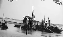 The Karolinenkoog–Karolinenkoog Eider ferry section was opened on 1 June 1886. From there, a steam ferry operated for passengers and freight over the Eider river to Tonning.